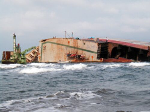 ジャイアントステップ号の船首部分の撤去作業が3日から始まっている。場所は日川浜海水浴場の真正面。緑色の水中ブルドーザーが海の中に入って行き、ガスバーナーで切断された船体部分を砂浜に引き揚げている。さすがに海の中、強風と荒波にもまれながらの作…